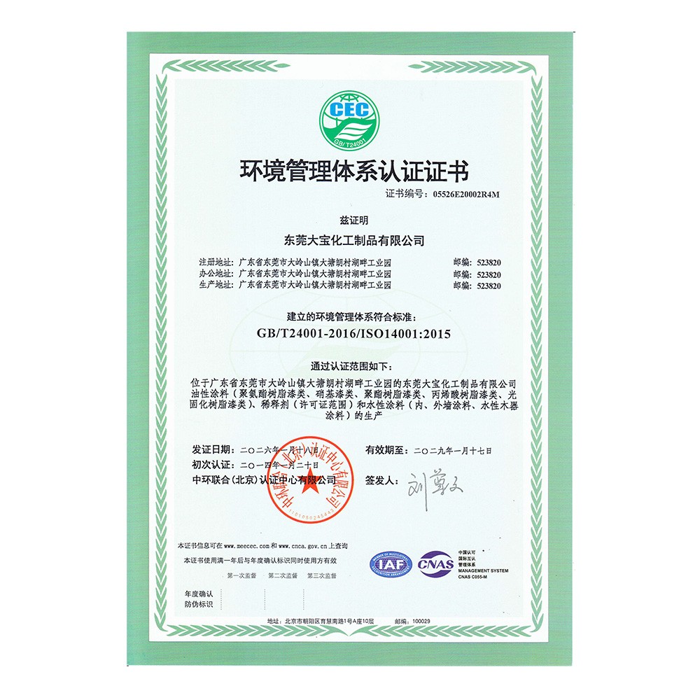 環境管理體系認證(東莞大寶)