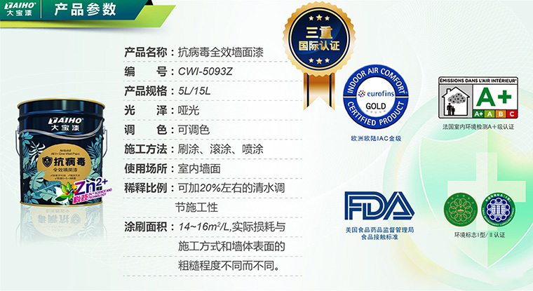 大寶抗病毒全效墻面漆,采用鋅離子黑科技,強效滅殺生活中常見的3+5+8種病毒、細菌和霉菌,大幅降低細菌傳播及感染風險。同時兼具耐擦洗、強效抗堿、凈味環保等多重墻面漆功能,大寶超強“鋅”生力,用專業和愛為家人筑起健康防護墻。