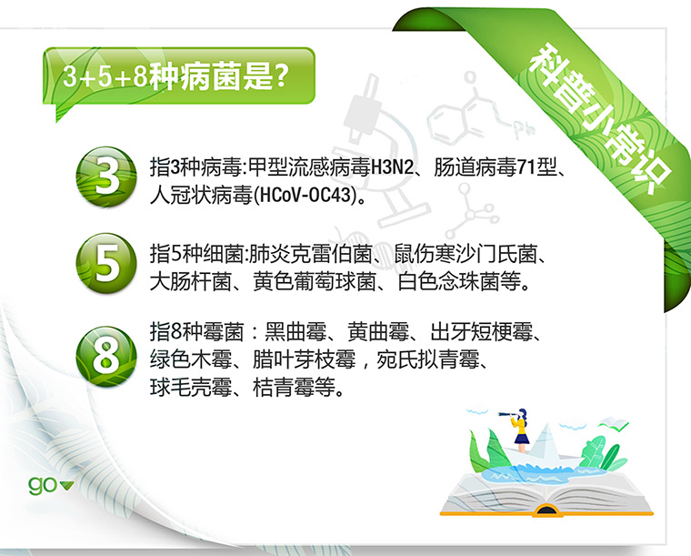 強效滅殺3種病毒:甲型流感H3N2,人冠狀病毒229E、腸道病毒71型