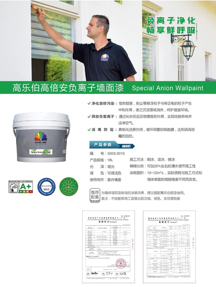 若參考大氣負離子空氣質量等級劃分依據,高倍安負離子墻面漆則達到環境等級一級,推薦有高環保要求的室內裝修使用。