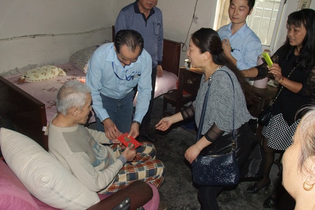 重陽節當天,鎮黨委朱書記、社區委員和上海大寶管理部簡侑仕經理、工程部林心旺顧問等一同前往當地敬老院,看望慰問了陸建英、陳伯民等8位孤寡老人。他們當中,年齡最大的近90歲高齡,最小的也有70多歲,因為無兒無女無所依靠,這些老人生活較為清苦,他們需要社會給予更多的關愛。