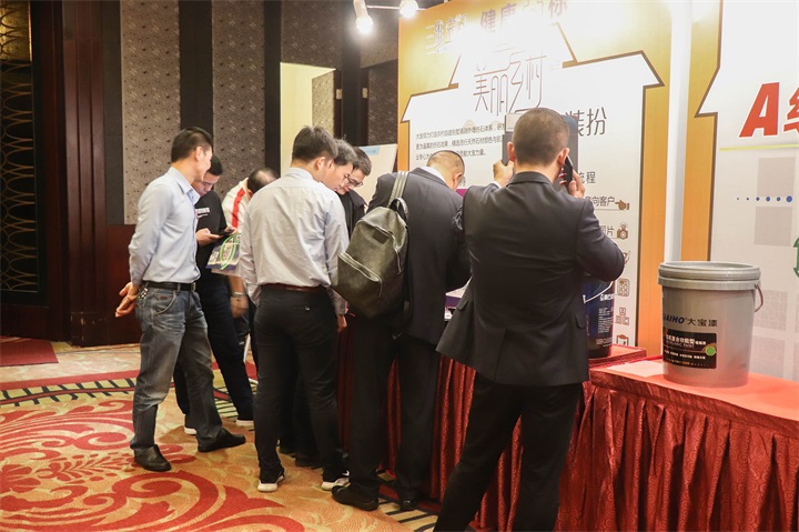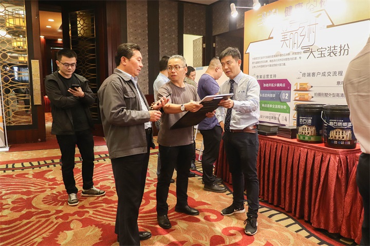 企劃部課長戴文豐作《2020終端“蛻變”4.0》主題分享。他從市場機(jī)遇與市場方向入手,明確公司2020年終端店面發(fā)力方向:仿石漆店和色彩店。他與經(jīng)銷商們講解了2020年大寶店面政策和終端引流方式。