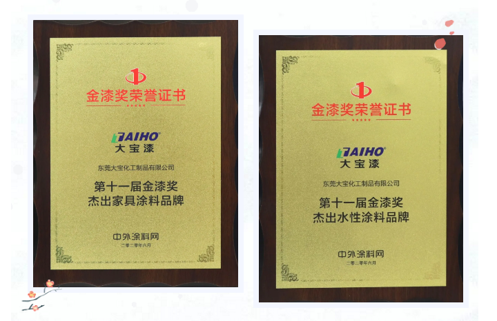第十一屆金漆獎頒獎盛典上,大寶漆一舉斬獲“杰出家具涂料品牌”、“杰出水性涂料品牌”等獎項。