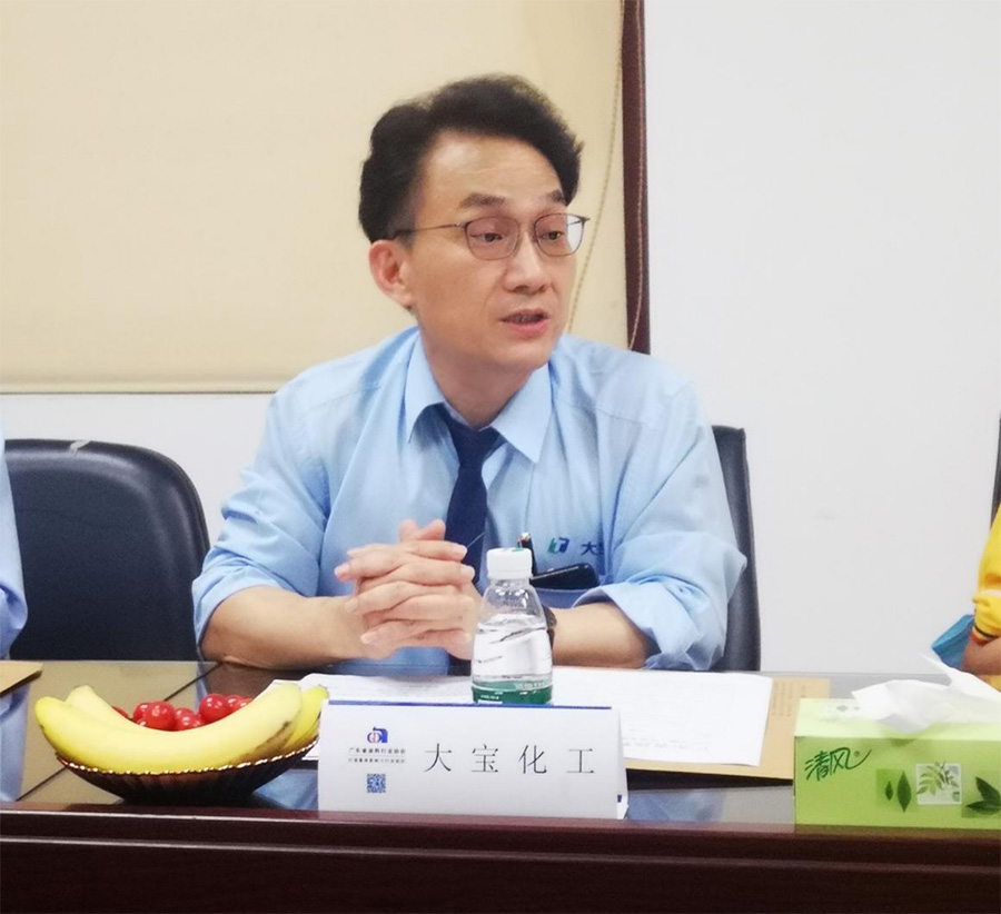 首先,東莞大寶化工副總經(jīng)理葉子琛對(duì)廣涂協(xié)一行的到來表示誠摯的歡迎和感謝,并重點(diǎn)介紹了大寶近30年的布局與發(fā)展。