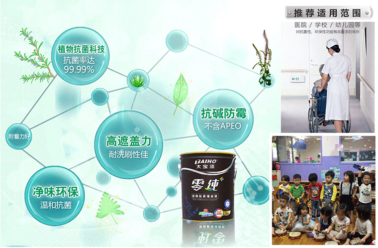大寶始終將消費者的健康放在首位,將【植物抗菌技術(shù)】導入涂料中,對配方技術(shù)進行創(chuàng)新升級,并成功研發(fā)零純+植物抗菌墻面漆。