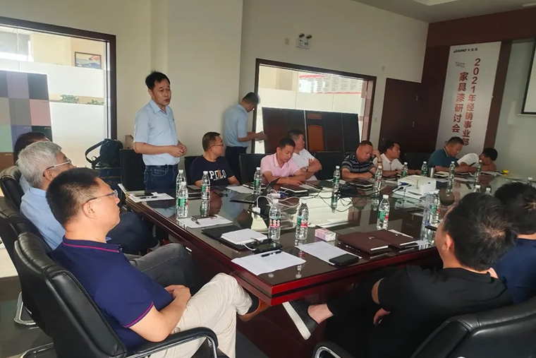 而后,經(jīng)銷事業(yè)部家具漆執(zhí)行經(jīng)理劉國(guó)勇帶來(lái)了以“破局 共生”為主題的工作報(bào)告。劉執(zhí)行經(jīng)理首先對(duì)家具行業(yè)從國(guó)際環(huán)境到國(guó)內(nèi)環(huán)境到市場(chǎng)環(huán)境現(xiàn)狀進(jìn)行了深入的分析,從公司在國(guó)內(nèi)市場(chǎng)布局、2021年上半年業(yè)績(jī)達(dá)成情況分析、客戶定位、產(chǎn)品品項(xiàng)突破、特色化產(chǎn)品、市場(chǎng)流通型產(chǎn)品、服務(wù)支持等方面進(jìn)行了全面的講解,通過(guò)“破局 共生”兩部分希望公司與經(jīng)銷商一起并肩作戰(zhàn),共迎困難。