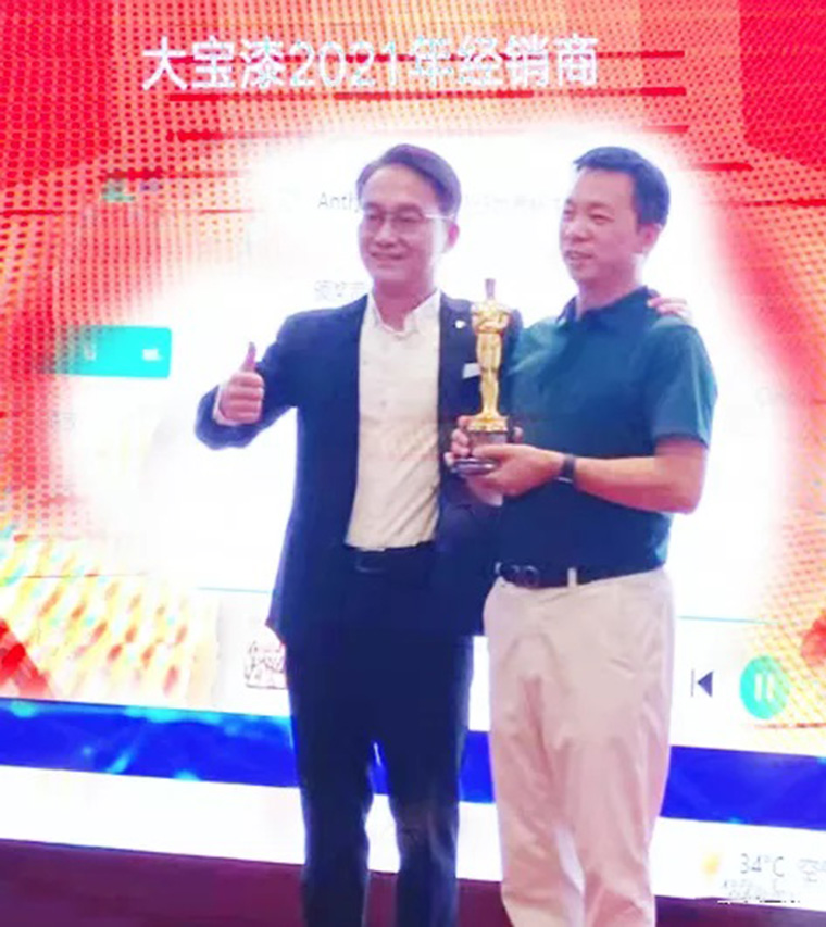 會(huì)議伊始,經(jīng)銷事業(yè)部葉子琛副總經(jīng)理為不忘初心、始終堅(jiān)守,專心經(jīng)營(yíng)大寶漆的武漢寶塔商貿(mào)李軍總經(jīng)理(以下簡(jiǎn)稱李總)頒發(fā)特別感恩獎(jiǎng),對(duì)20多年來(lái)用心經(jīng)營(yíng)大寶漆的李總所做的貢獻(xiàn)給予高度肯定和感謝。