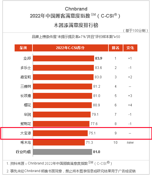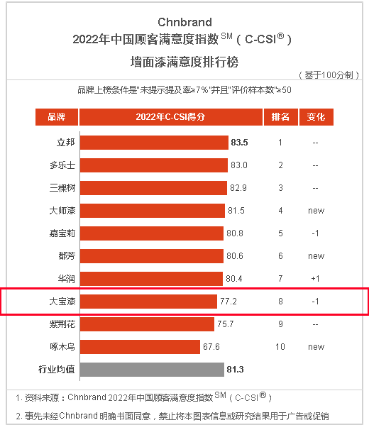 彰顯品牌韌性|大寶漆再度上榜中國顧客滿意度指數(shù)排行榜