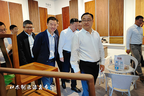 ▲南康區家具協會會長參觀大寶漆展館