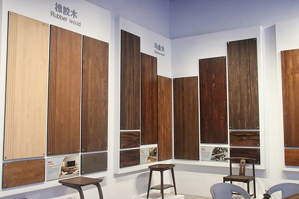 其展示精致與美學共存的色板,以黑檀、烏金木、白蠟木、黑胡桃和奧古曼等為代表的多種素材,呈現了色彩多樣化,工藝環?;厔?,滿足了用戶對于不同風格的需求。