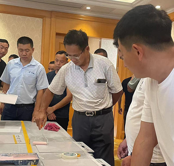技術(shù)部周微老師為大家?guī)硭囆g(shù)涂料新品工藝的培訓(xùn),大家熱情高漲,積極參與,詳細(xì)記錄了各個(gè)工序環(huán)節(jié)的注意事項(xiàng),60塊樣板全部現(xiàn)場(chǎng)制作完成。加強(qiáng)對(duì)經(jīng)銷商和施工人員的技術(shù)培訓(xùn),提高其對(duì)仿石漆的認(rèn)知和施工技能,確保產(chǎn)品應(yīng)用效果。