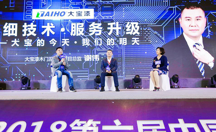 在“木門黑科技”高端對話環(huán)節(jié)中,謝總監(jiān)與搜門網(wǎng)CEO石興、東威利總經(jīng)理葉廣柱共同探討大寶漆在木門品質(zhì)提升上的作用。