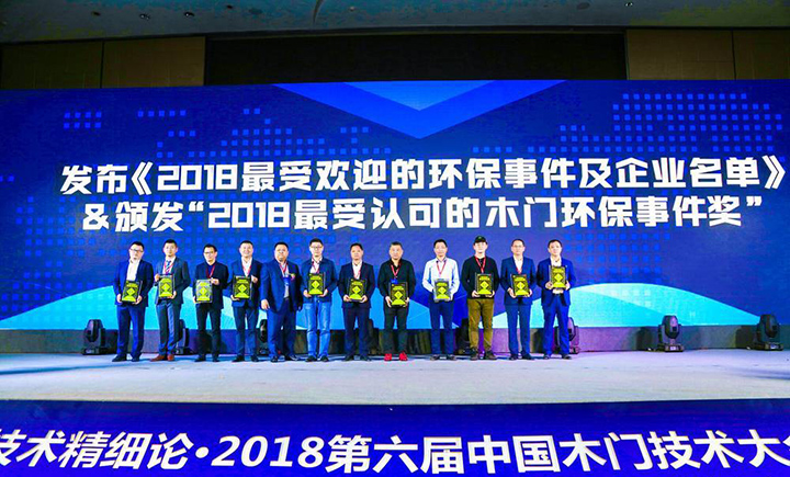 大寶漆榮獲2018最受認可的木門環(huán)保事件獎(左四謝偉代表領獎)