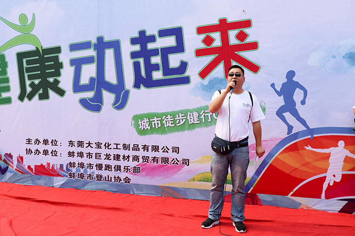 開(kāi)幕式上,蚌埠慢跑俱樂(lè)部楊會(huì)長(zhǎng)致開(kāi)幕詞,他強(qiáng)調(diào)徒步和慢跑對(duì)于現(xiàn)代人們健康的重要性。大寶漆華東二區(qū)業(yè)務(wù)總監(jiān)謝重亮向參加徒步的健將們介紹了戶外運(yùn)動(dòng)要注意的事項(xiàng)。接著,蚌埠巨龍建材張俊良總經(jīng)理發(fā)言。他表示,大寶漆作為綠色環(huán)保涂料的制造商和涂裝解決方案的供應(yīng)商,長(zhǎng)期以來(lái),秉持“堅(jiān)持品質(zhì),永續(xù)環(huán)保”的理念,為廣大消費(fèi)者提供綠色環(huán)保的涂料產(chǎn)品。此次大寶漆舉行蚌埠徒步健身活動(dòng),是希望為蚌埠市民帶來(lái)積極健康的生活方式,引導(dǎo)更多人參與運(yùn)動(dòng),提高身體素質(zhì),與大家攜手共創(chuàng)健康的生活方式,共建綠色家園!最后他宣布2018年蚌埠大寶漆健康徒步行活動(dòng)正式開(kāi)始。