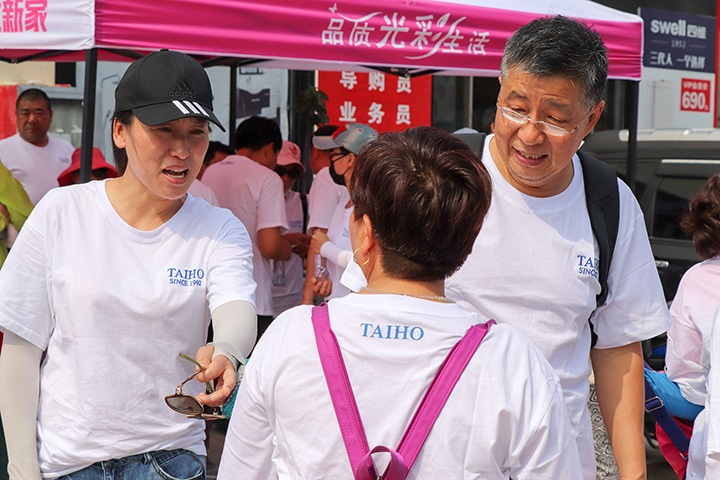 在工作人員的指引下,參賽隊(duì)伍高舉印有“大寶漆,品質(zhì)光彩生活”的旗幟徐徐前進(jìn),形成一道道亮麗的風(fēng)景線。長(zhǎng)長(zhǎng)的隊(duì)伍從起點(diǎn)出發(fā),沿途,大寶漆工作人員為參賽者準(zhǔn)備了飲用水補(bǔ)給,運(yùn)動(dòng)愛(ài)好者們一路走走拍拍,用腳步和汗水感受運(yùn)動(dòng)的樂(lè)趣。
