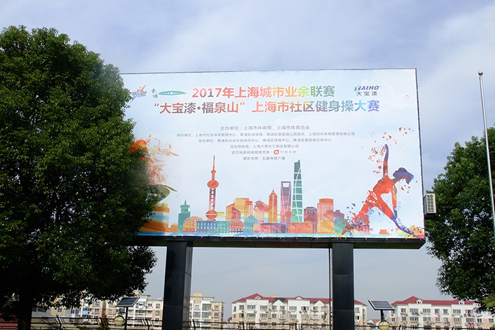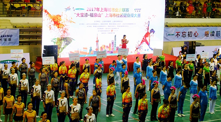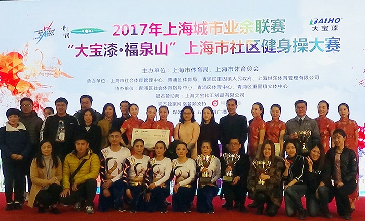 11月25日下午,由上海市社會體育管理中心、青浦區體育局、重固鎮人民政府主辦,上海大寶化工制品有限公司獨家冠名的大型市民健身操大賽——2017年“大寶漆·福泉山”杯在青浦體育館隆重舉行,來自上海市16個區22支隊伍共300多名選手匯聚一堂,在這一年一度,代表上海市社區健身操最高水平的大賽上,跳出活力,舞動申城。