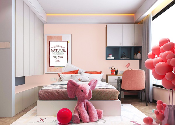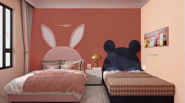 選擇同為暖色調(diào)的橘色或紅色,與藕粉色相互呼應(yīng),在自然光照射下,這組合顯得清新明亮,帶有一絲俏皮與浪漫;而當(dāng)夕陽(yáng)余暉灑入房間墻面的色彩又流露出沉穩(wěn)與寧?kù)o的氛圍。