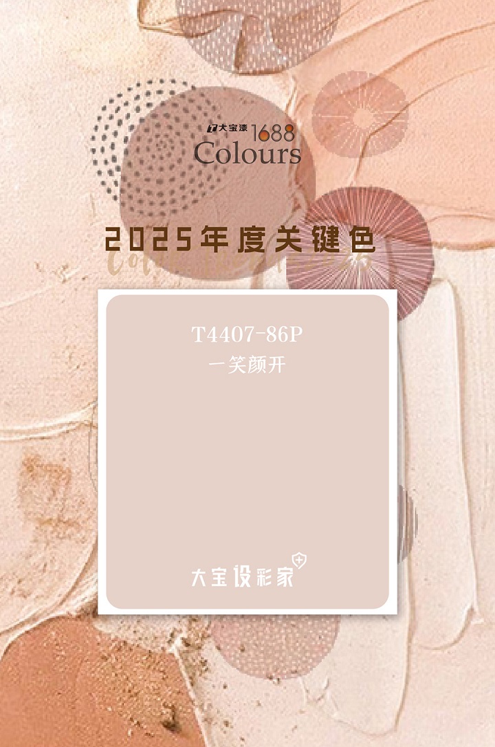 厭倦了一成不變的大白墻?不妨試試讓人一見傾心的粉色系!大寶設(shè)彩家2025年推薦色T4407-86P/一笑顏開(類似藕粉色),以其獨(dú)特的柔和質(zhì)感將優(yōu)雅時(shí)髦大放異彩,藕粉色是經(jīng)典的中性色,色調(diào)介于粉色與肉色之間,因其加入了灰調(diào),明度降低,仿佛是沙漠中的一抹晚霞,帶著灰紫色的沉靜典雅,又透露著粉色的柔美知性。