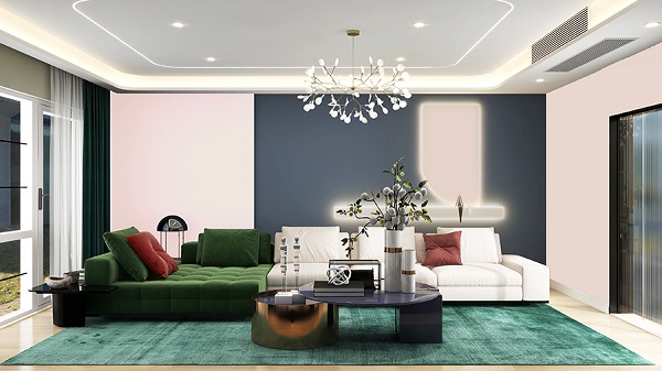 深藍(lán)或?qū)毸{(lán)與藕粉色對(duì)比搭配,展現(xiàn)出視覺沖擊力。藕粉色的溫暖柔和能有效中和藍(lán)色的冷調(diào),瞬間讓家居配色與眾不同,凸顯獨(dú)特的個(gè)性化風(fēng)格,為空間注入現(xiàn)代感與藝術(shù)氛圍,讓人眼前一亮。